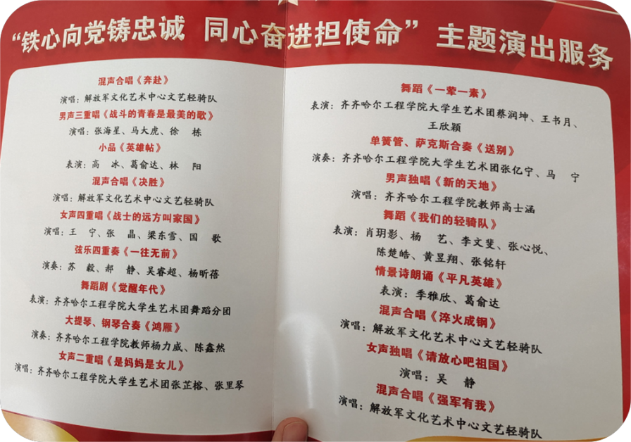 随后,演出正式拉开帷幕。大学生艺术团的节目舞蹈剧《觉醒年代》,舞者们用优美的舞姿演绎历史时代的更迭与觉醒。杨力威和陈鑫然老师的大提琴与钢琴的合奏《鸿雁》,琴声悠扬、人陶醉。舞蹈《一荤一素》、歌曲《是妈妈是女儿》深情演绎了母爱似海。单簧管与萨克斯的合奏《送别》及高士涵老师的独唱《新的天地》将整个演出推向了高潮,现场掌声不断,气氛热烈。