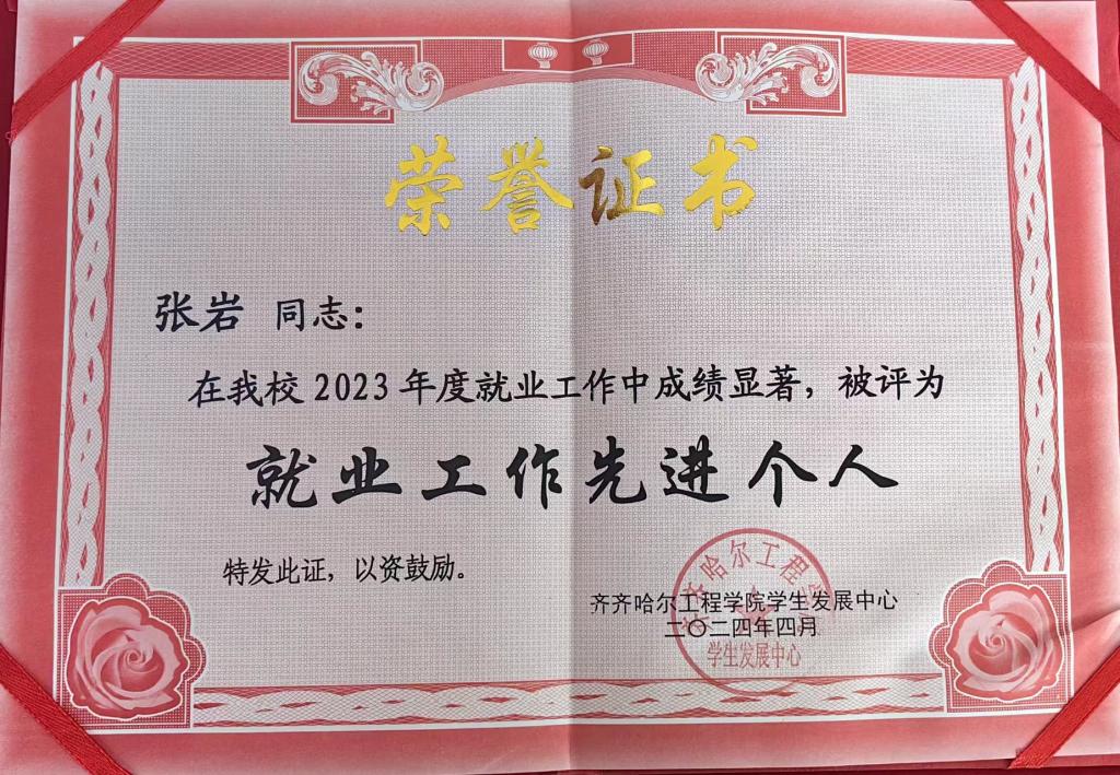 从事教育事业,既要仰望星空,也要脚踏实地。张岩在讲授专业课《汽车制造工艺学》《互换性技术基础》中,不断探索和实践教学模式,改进教学方法,优化教学过程,将理论与实践相结合,为学生的实习、就业奠定了坚实基础。在授课过程中,她引入真实的企业项目,通过项目的练习,提高学生的实践技能,缩短学生就业与岗位需求的距离。在2024年4月,被评为就业工作先进个人。