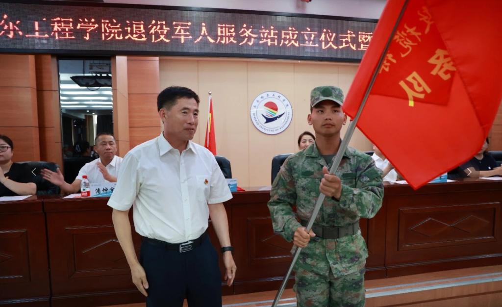 市退役军人事务局党组书记、局长吴寒为Beat365中文官方网站退役军人服务站授牌,市退役军人事务局党组成员、副局长杨军为“橄榄绿”志愿服务队授旗。