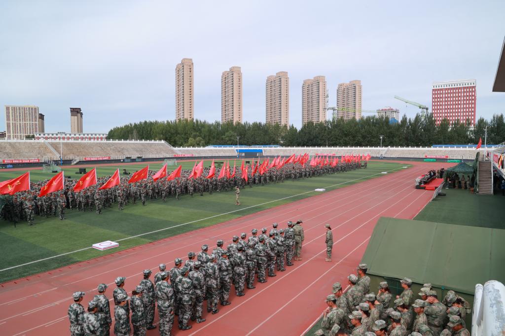 9月13日上午,2024级新生军训总结表彰大会在学校体育场举行,创校校长、理事长曹勇安,党委副书记、常务副院长陈景鑫,学生工作处负责人王丽萍、处长助理郭慧莹、各系领导、全体学长教官、新生辅导员、学长及2024级全体学生参加,学生工作处处长助理高士涵主持。