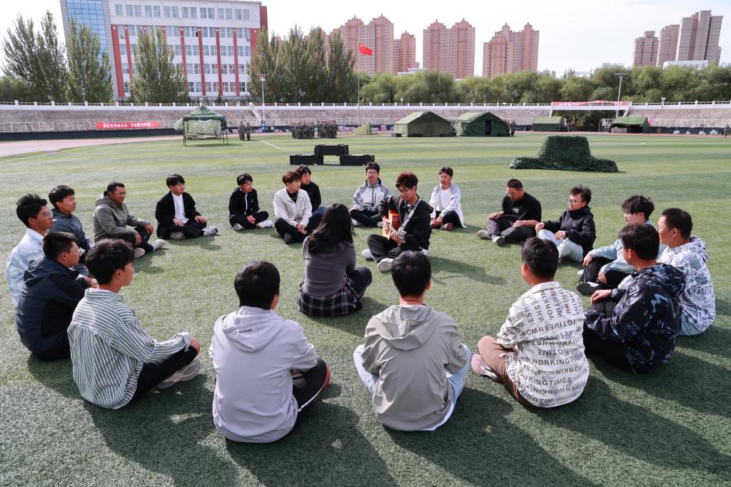 全体学生共同演唱了歌曲《中国军魂》,同学们嘹亮的歌声唤起了慷慨报国的凌云壮志,磅礴的气势书写了新时代的“亮剑精神”。