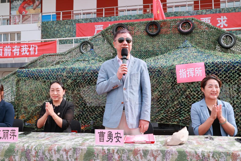 曹勇安作总结讲话,他对全体学生在本次军训中所展现出的表现给予了高度评价。指出,学校自2011年成立学长教官团,现已成为学校开展国防教育活动的核心力量,在今年的专业实践学期中,学长教官团对外输出累计24次。学长教官以自身经历和经验,向新生传递“亮剑”精神。他对新生提出三点希望:一是要珍惜“军训成果”,弘扬“亮剑”精神;二是要坚持“学好专业”,力求知行并进;三是要学会“交好朋友”,促进团队合作。