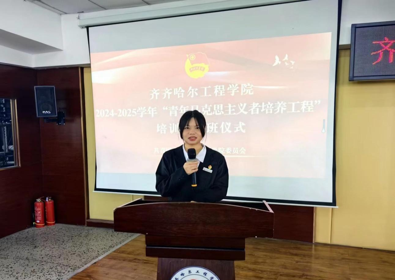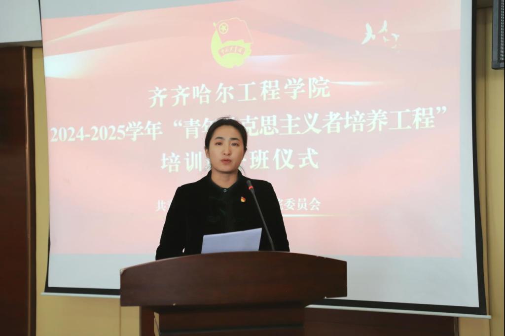 高士涵宣读《Beat365中文官方网站2024-2025学年“青马工程”培训方案》,从培训目标、培养要求,培训内容、考核方式等方面介绍了本期培训班的基本情况。