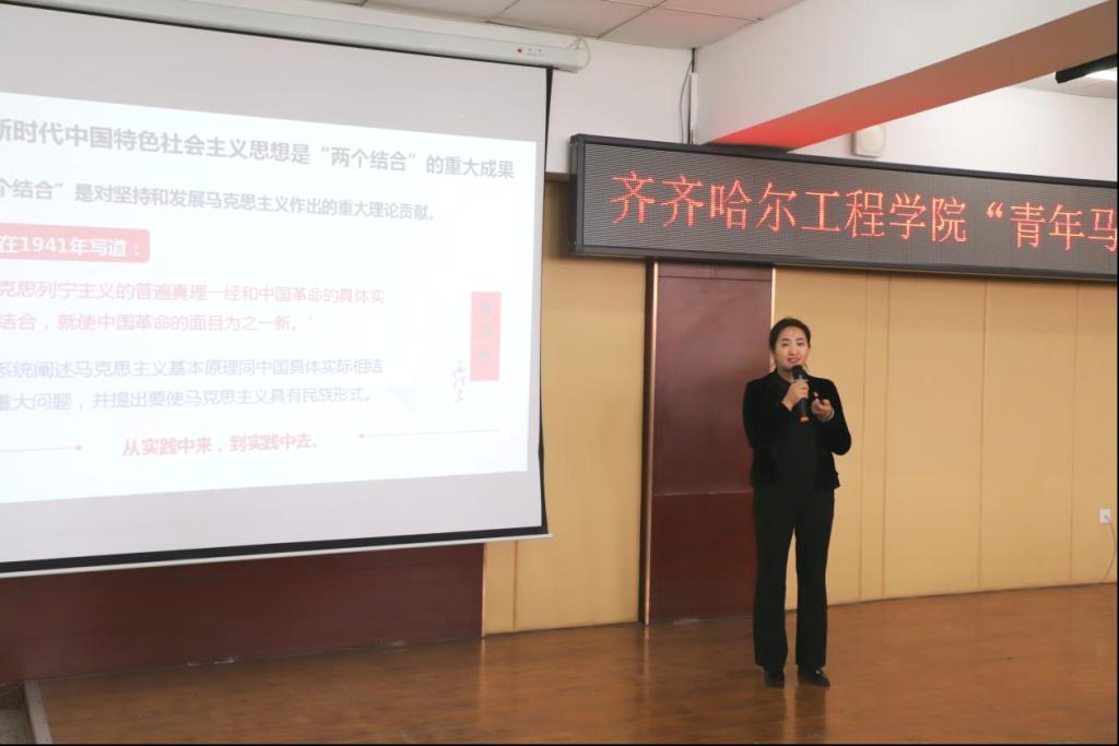 开班仪式结束后,陈景鑫以《习近平新时代中国特色社会主义思想概论》为题,为学员开展集中授课。她从习近平新时代中国特色社会主义思想是“两个结合”的重大成果出发,阐述马克思主义基本原理同中国具体实际、同中华优秀传统文化相结合是必由之路这一论述的重要性。