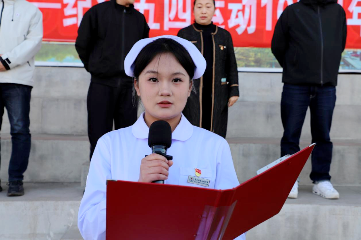 优秀团干部代表,康护工程系护理学222班车芳菲发言。她表示,将继续带领团员青年积极投身团学工作,发挥好模范带头作用。同时,在审核评估专家即将进校之际,希望同学们以实际行动参与迎评工作,为学校发展贡献力量。