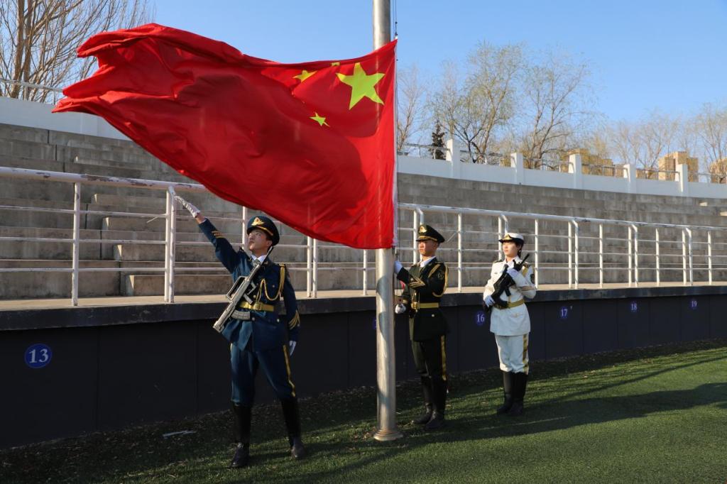 伴随着雄壮的《义勇军进行曲》,五星红旗冉冉升起,全体师生肃立注目,高唱国歌。在庄严的国歌声中,表彰大会正式拉开帷幕。