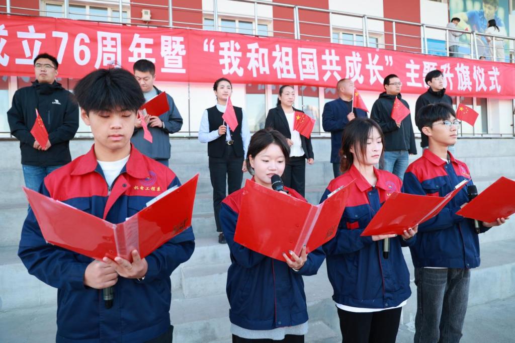 76年砥砺奋进,76年春华秋实,为庆祝中华人民共和国成立76周年,激发全校师生爱国情,9月30日,庆祝中华人民共和国成立76周年暨“我和祖国共成长”主题升旗仪式在Beat365体育场举行。学校党委副书记、纪委书记、副校长陈景鑫出席仪式,学生工作处处长王丽萍、副处长孙晓芳,团委书记高士涵,各二级学院党委副书记、辅导员、全体2025级新生参加。