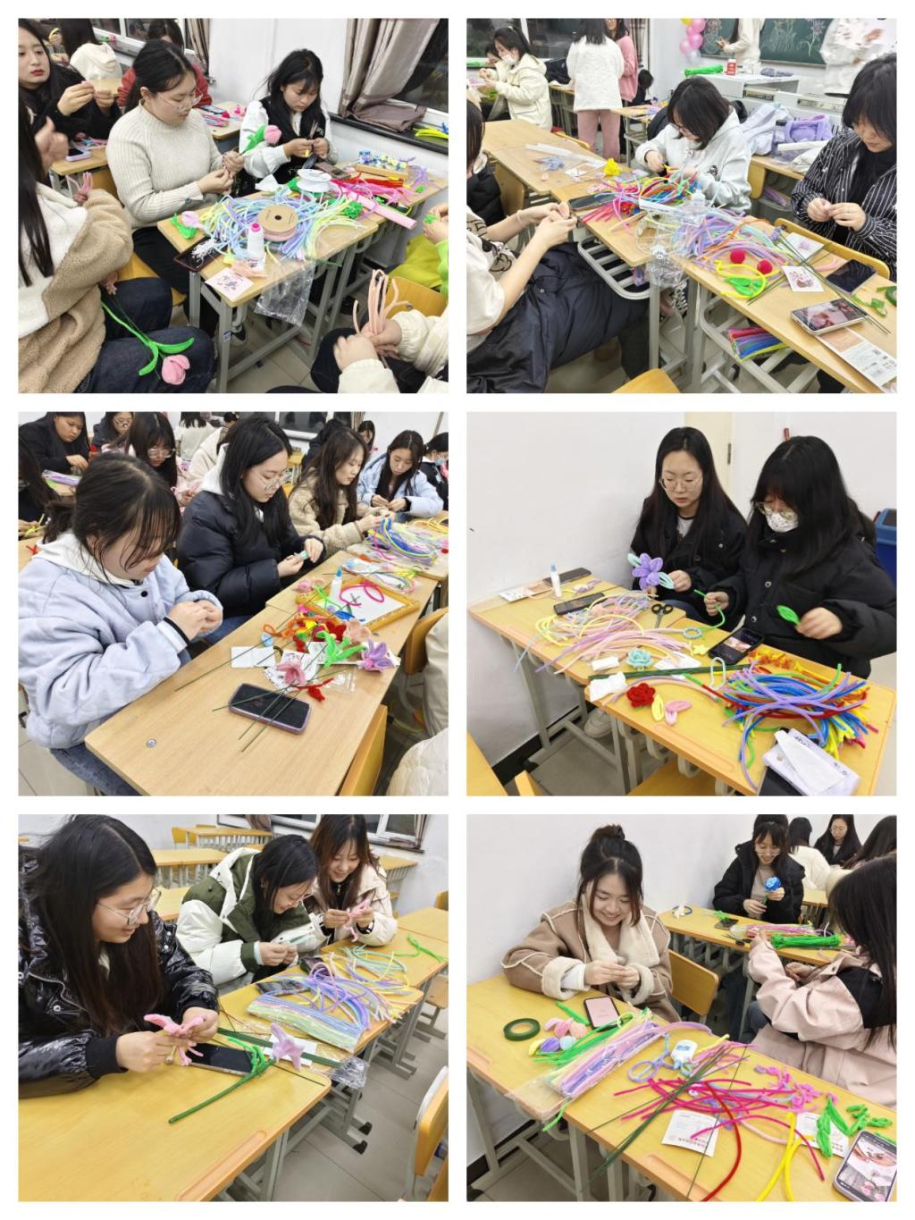 女生们在制作美丽精致的DIY扭扭棒花束中,体验到合作、沟通、创造和分享带来的快乐与满足感,丰富了女大学生的校园生活,使大家真挚交流,表达美好愿望,获得自立自信。建筑工程系团总支表示,希望本次活动能给女生们带来快乐,也祝所有女生们“女生节”快乐。