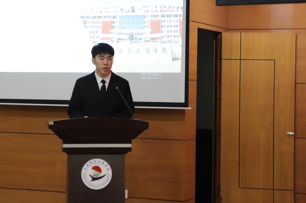 机电工程系机械221班王谊国作为在校生代表发言,回顾个人社会实践学期经历,分享学习成果,表示将在即将开启的社会实践学期重新再出发,争取取得优异成绩。