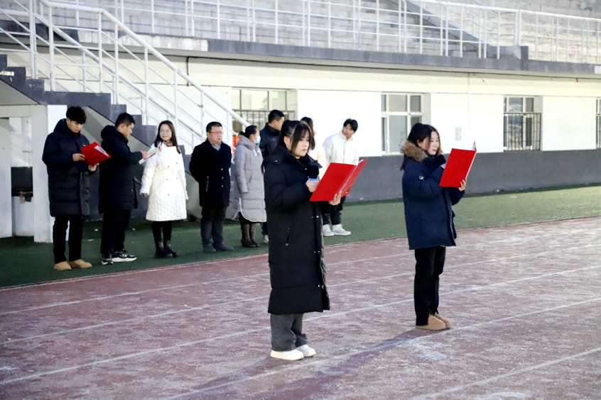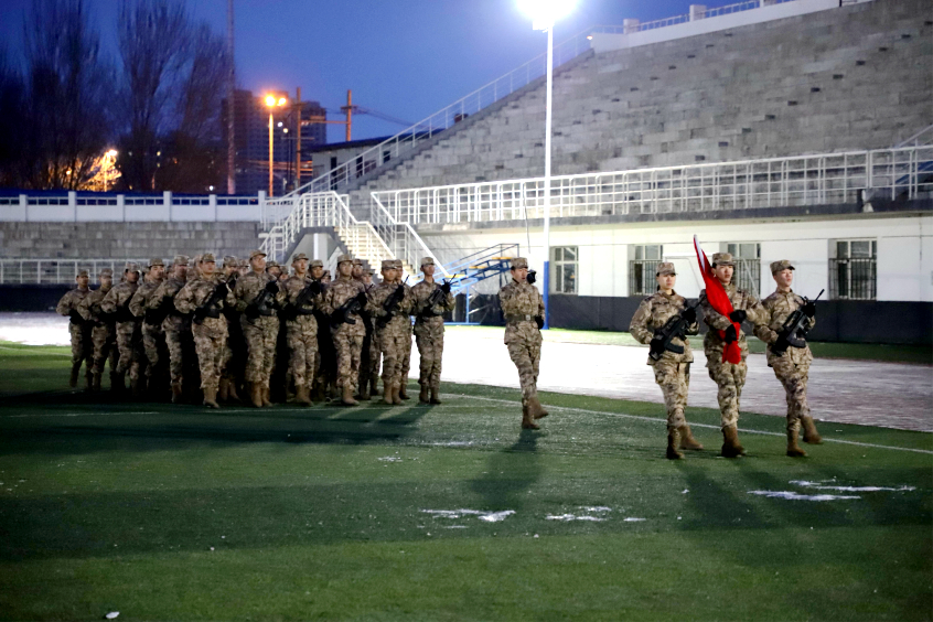 伴随着中华人民共和国国歌的奏响,教官团迈着铿锵的步伐,护送国旗走向升旗台。全体师生齐唱国歌,国旗在晨光中迎风飘扬。