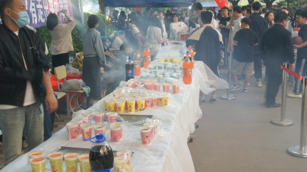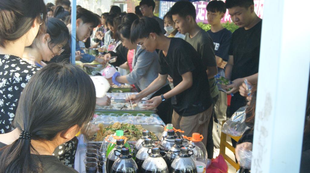美食街人头攒动,烟火气与歌声在风中飘荡,毕业生们眉开眼笑,品尝老师和学弟学妹精心烹制的美食,感受母校深情厚谊,不住地感叹:“学校对我们太好了,学弟学妹太热情了,这是最美味的美食.....”