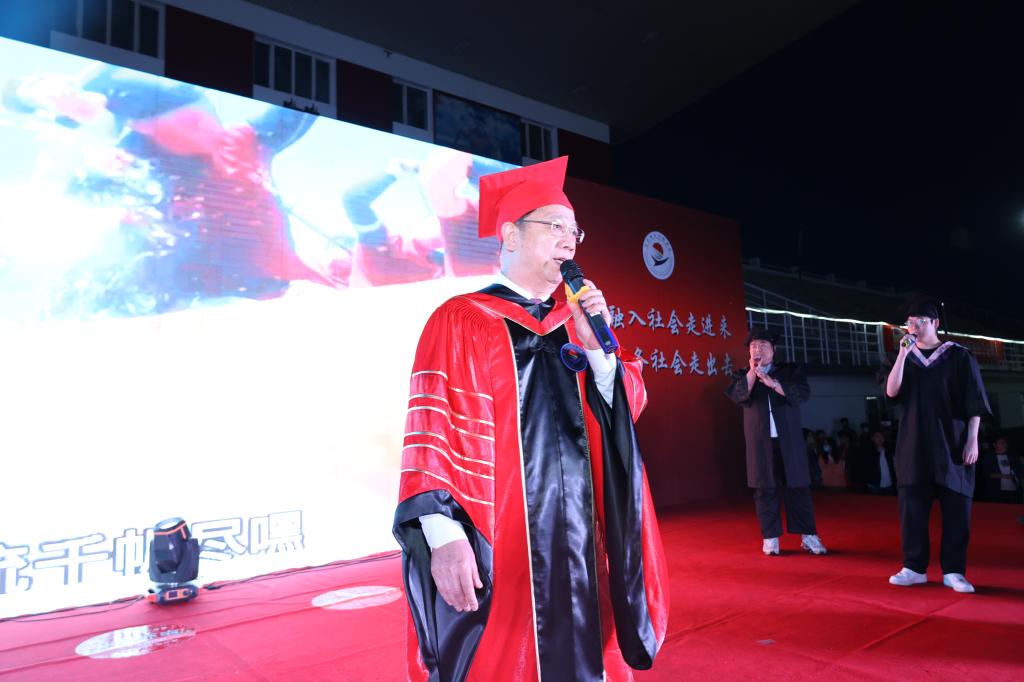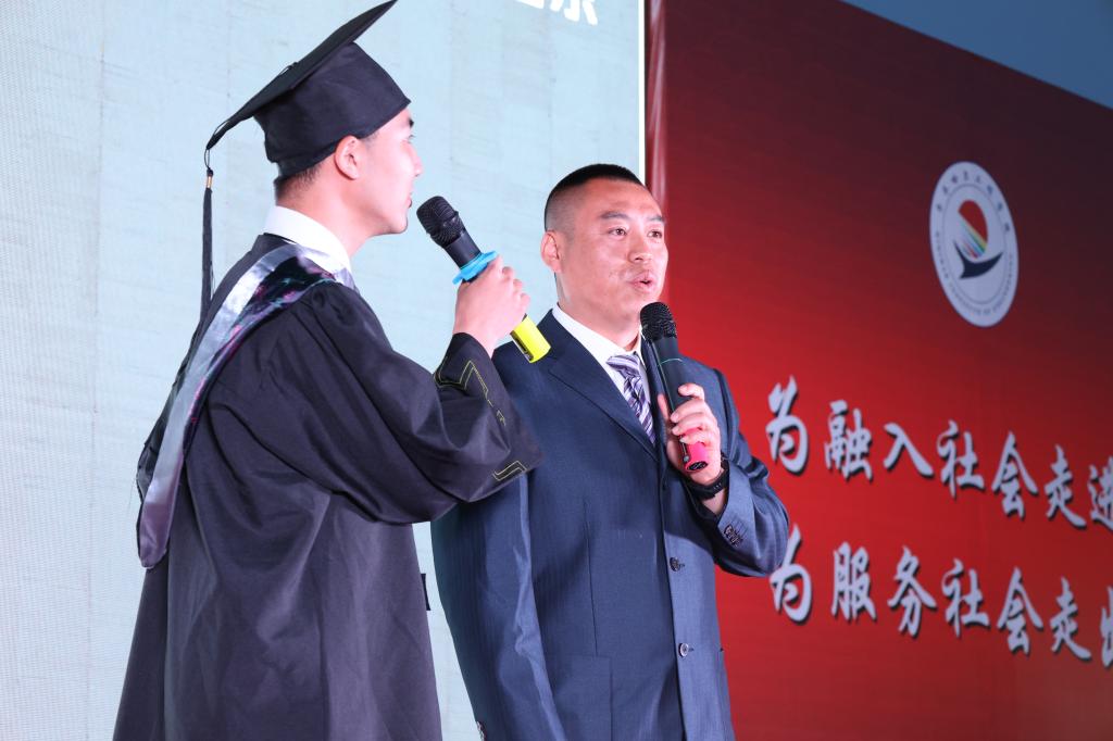 在热烈的掌声中,创校校长曹勇安为大家深情高歌《众人划桨开大船》,歌声撼动全场,将毕业典礼推向了高潮。
