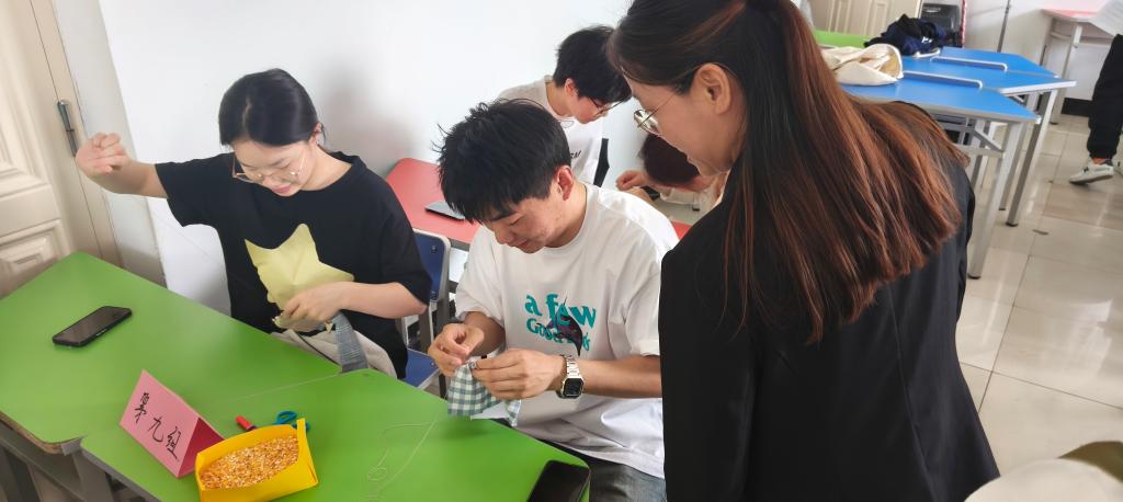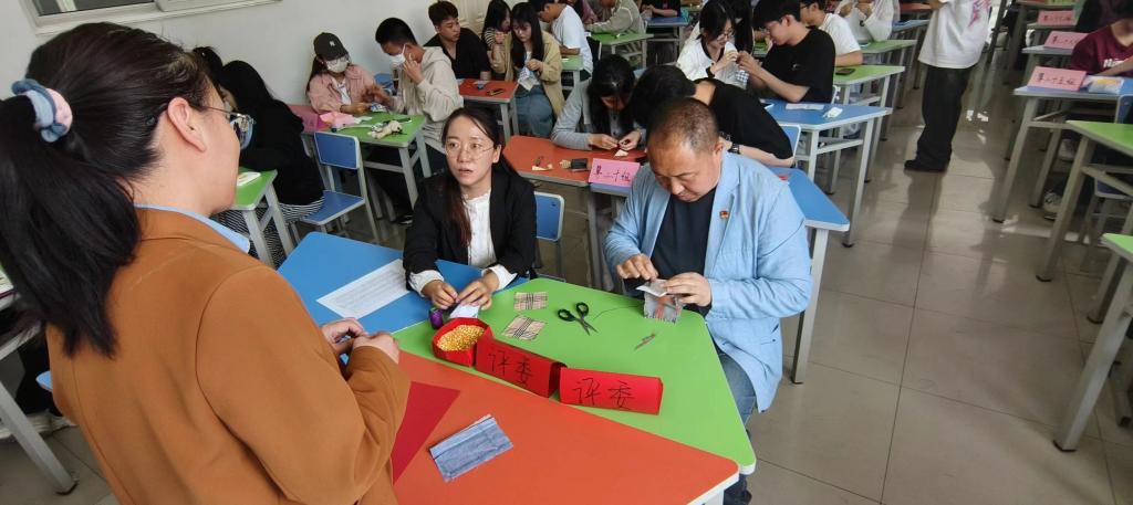 黎瑞率先为参赛者讲解了比赛规则与流程。选手依照预先设定的小组划分就座,通过观看缝制沙包的短视频加深理解沙包制作过程。