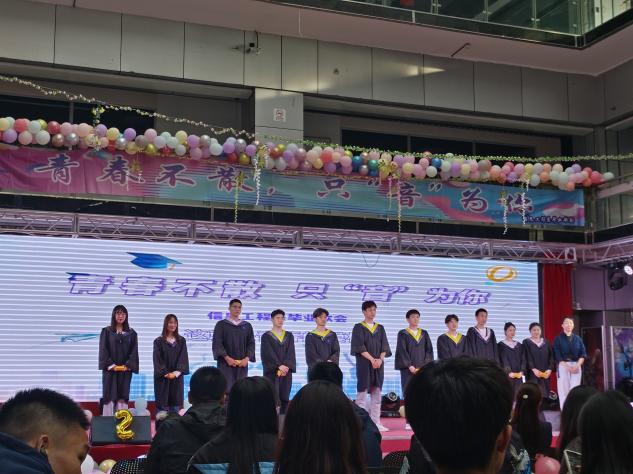 接下来的诗朗诵《我拿什么留住你》,歌曲《倔强》《明天,你好》《盛夏》《十年》等精彩的节目接踵而至。随后,舞台背景的大屏幕中播放了学弟、学妹们录制好的祝福视频,祝愿学长们前程似锦,不要忘记母校,让在座的学长们泪目。