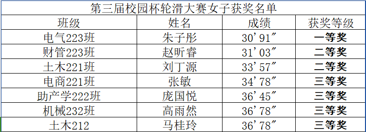 在比赛中,参赛队员展现了娴熟的技术,他们飞速地滑过赛道,展现了高超的控制能力和卓越的平衡感。最终,电气223班钟镇阳、朱子彤分别获得男女组一等奖。