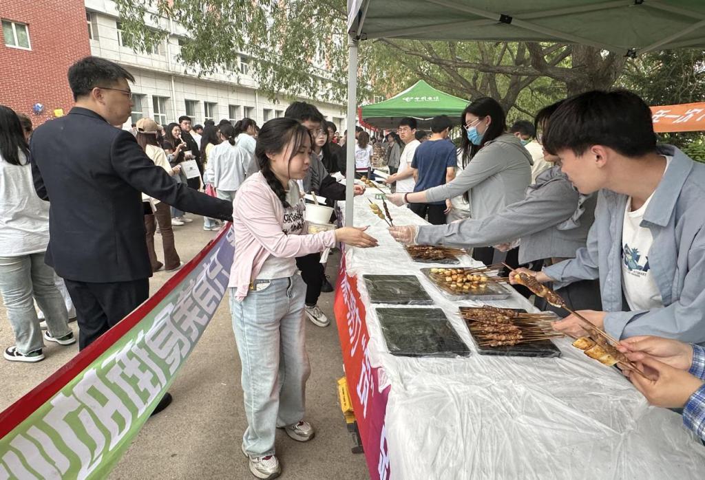 在总务处伙食科的带领下,各食堂及档口也积极参与美食街活动,展示各自的特色美食,有粽子、烤肉拌饭、酿皮等特色小吃近20种,让美食街的内容更加丰富,希望毕业生们能够在未来的人生道路中经常想起大学食堂的各种美味,并在人生道路上乘风破浪,勇往直前。