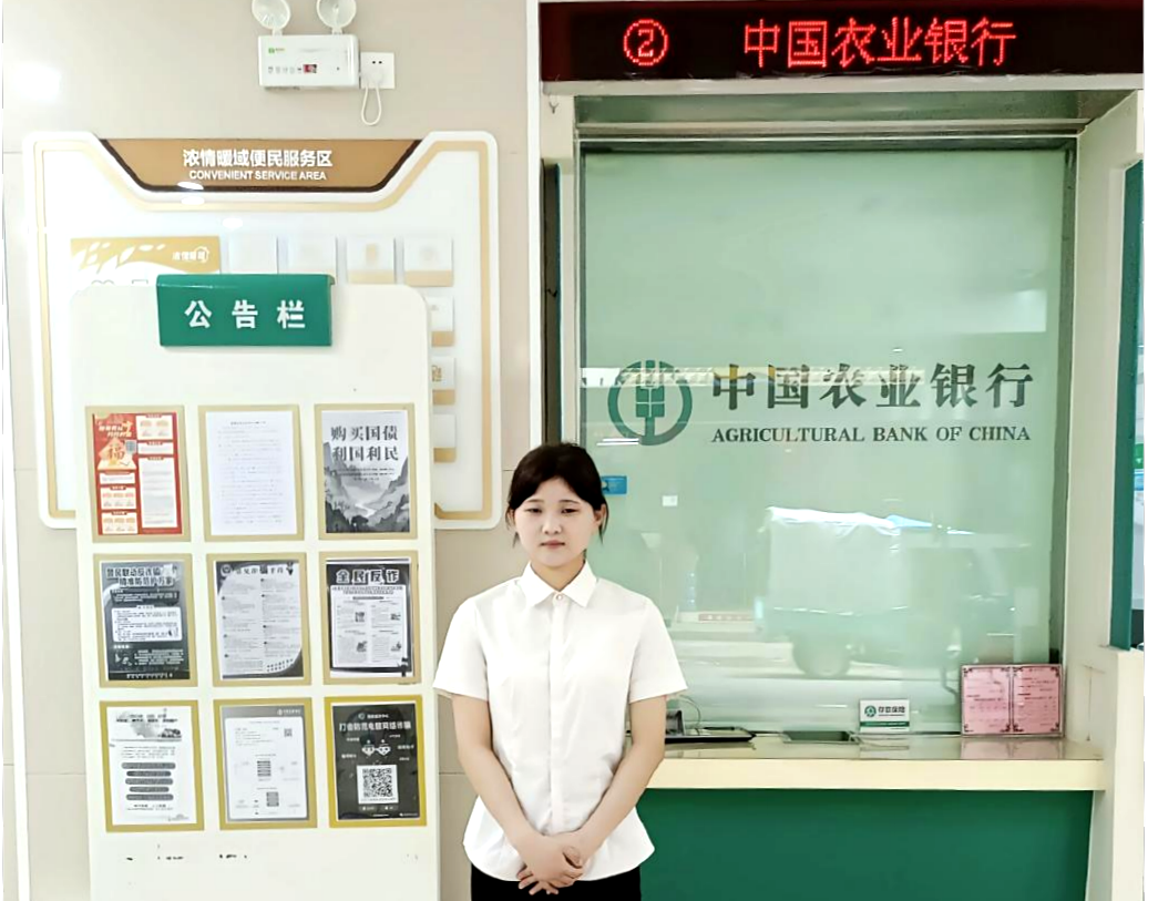 自实习以来,马佳玲便以高度的责任心和饱满的热情投入到工作中。她迅速熟悉乡镇农业银行的业务流程和服务规范,通过不断学习和实践,逐渐成长为一名能够独当一面的金融实习生。在工作中,她不仅能够准确地引导客户至相应的区域办理业务,还主动询问客户需求,积极为客户提供个性化的金融服务方案。