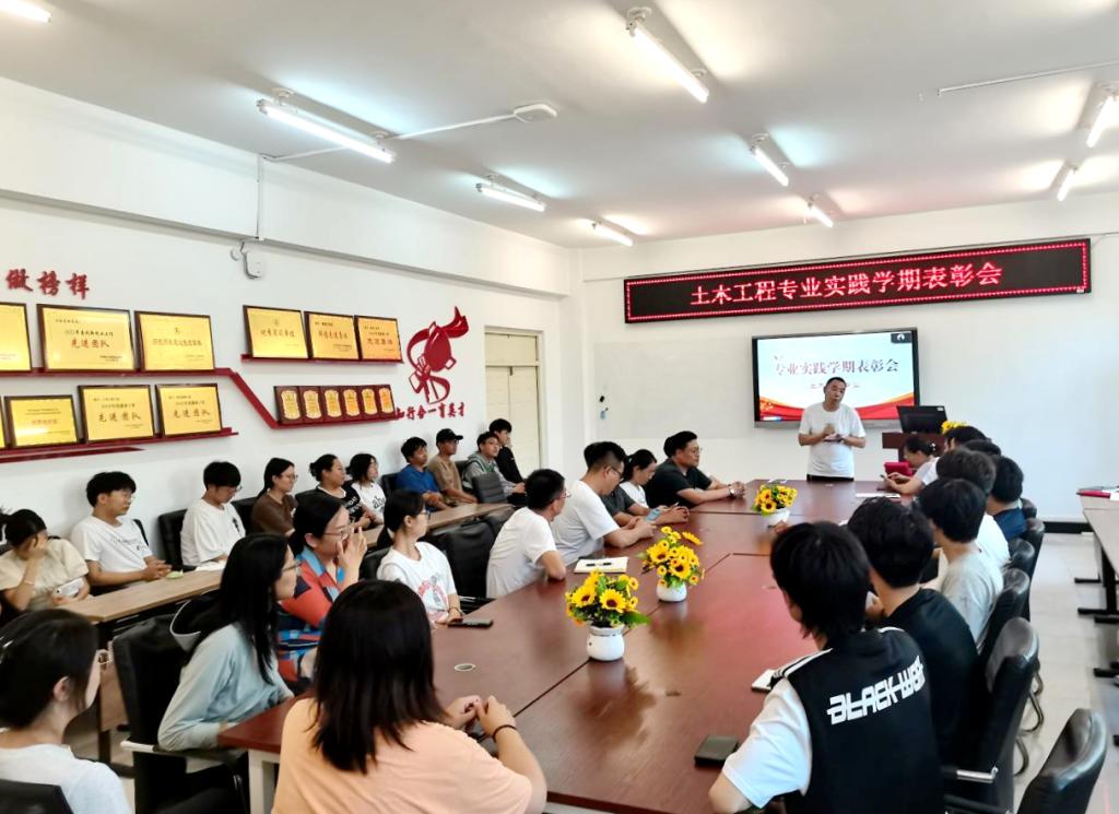 7月24日,建筑工程系土木工程专业实践学期阶段表彰大会在二号教学区2409教室举行,钟美慧老师主持,土木工程专业全体教师和学生代表参加。