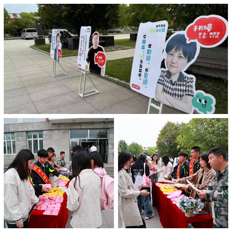 机电工程系领导、辅导员及生涯导师在图书馆前举行“开学第一课”欢迎仪式。精心准备了“开学大礼包”,还特别制作了辅导员的卡通人形立牌,增添了仪式的趣味性与互动性,更拉近了师生间的距离。