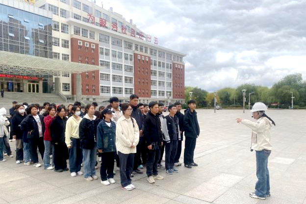 出发前,张晶晶对学生进行安全教育,学生怀着对智慧工地的好奇和期待,徒步前往工地现场。