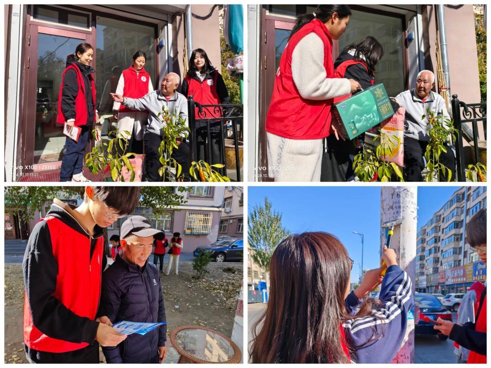 10月11日,校团委组织学生志愿者前往正阳街道火电社区慰问老人,为他们送去了牛奶、大米等生活品。在交谈中,志愿者了解了老人的生活现状与需求,并向其传递了深切的关怀与温暖。此外,志愿者们还积极参与了社区环境整治行动,用实际行动为社区环境的整洁与美观贡献了自己的青春力量。