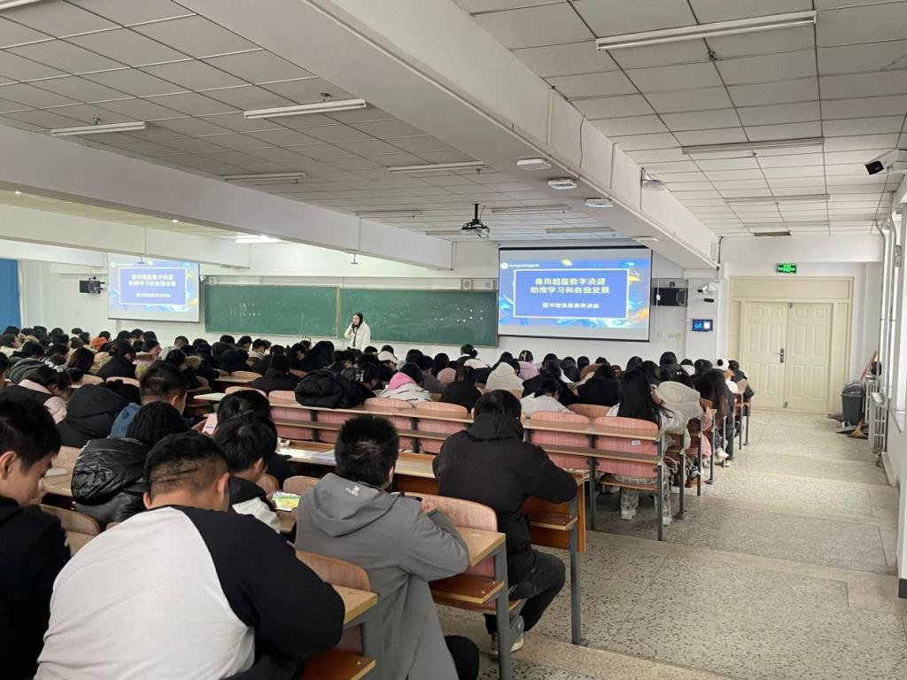 28日下午,图书馆在401室,举办了以“善用超星数字资源,助推学习和自我发展”为主题的信息素养讲座,为期两天,共计三场。特邀超星数字资源平台刘雪莲老师主讲,学生通过第二课堂“到梦空间”报名参加。