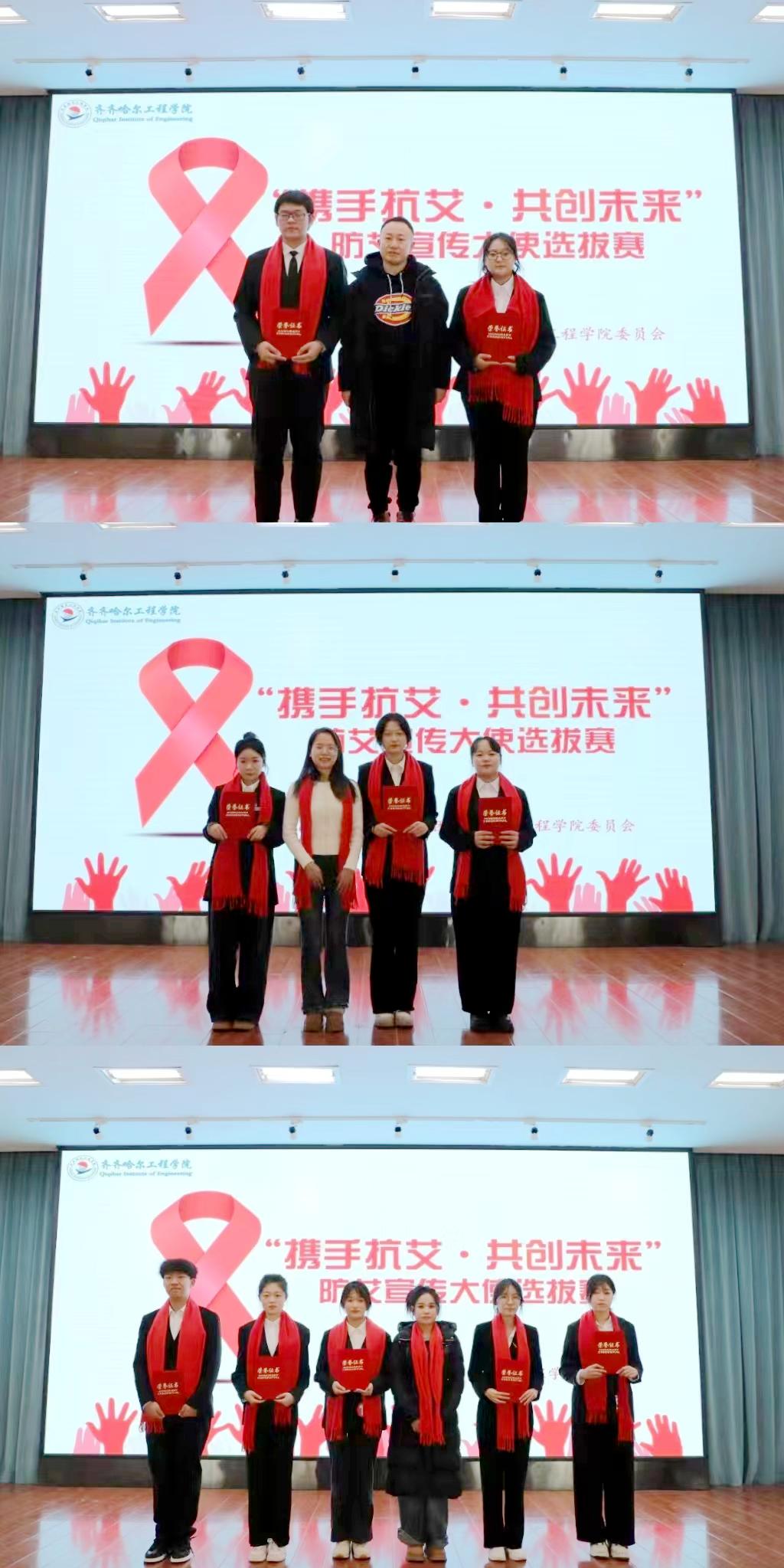 为大力开展艾滋病防治宣传与教育工作,普及艾滋病知识,增强学生自我保护意识,12月9日,校团委在二号教学区2508会议室开展“携手防艾·共创未来”防艾宣传大使选拔赛,特邀龙沙区疾病预防控制中心主任王力刚、校团委指导教师张云惠及各系团总支书记担任评委。