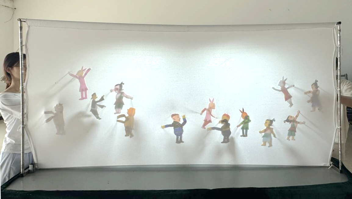 活动特别设置了作品互评环节,同学们以《三打白骨精》为灵感,将现代设计理念融入传统皮影造型,创作出机甲版孙悟空、赛博白骨精等别具一格的角色,并手持自制皮影进行创意短剧展演,用夸张的动作和诙谐的台词将现代生活元素融入经典故事,现场笑声与掌声此起彼伏。