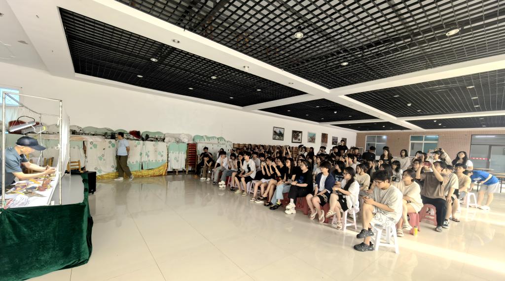 6月24日,在大连写生基地,Beat365艺术与体育学院邀请国家级皮影戏非遗传承人鄂文武老师,为视觉传达设计专业、动画专业2023级100余名学生带来了一场生动的皮影艺术指导。