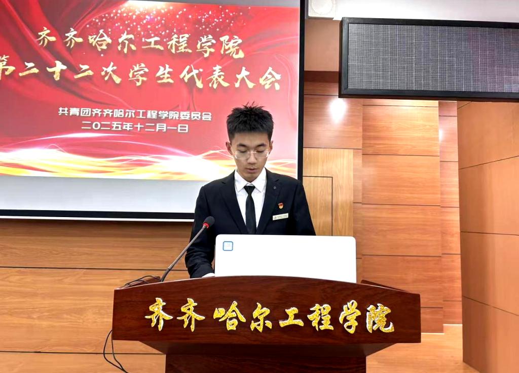 陈景鑫代表学校,向本次学代会的召开致以热烈祝贺,对各级学生会及广大学生干部过往的辛勤付出与工作成绩给予高度评价和充分认可,并对全校学生提出三点希望:一是以“榜样力量”为核心,引领团员青年勇担时代重任,夯实道德修养,深入践行“三五能力”要求;二是聚焦“桥梁纽带”核心职能,全心全意为团员青年的成长成才保驾护航;三是以“先锋组织”建设为目标,推动共青团工作实现全方位、高标准发展,切实发挥团学干部作为共青团事业“根本依托与骨干力量”的关键作用。