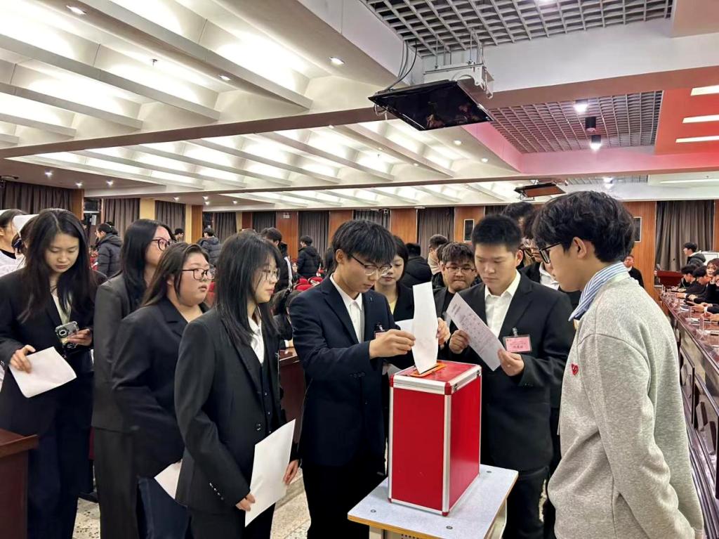 在竞选环节,学生会预选的18位学生委员依次竞选。在监票人的监督下,学生代表进行了无记名投票。最终,财管231班武佳艺、护理学236班史鑫凯、电气231班唐万春、计科233班武梦琳等18位学生当选为学生委员会委员。