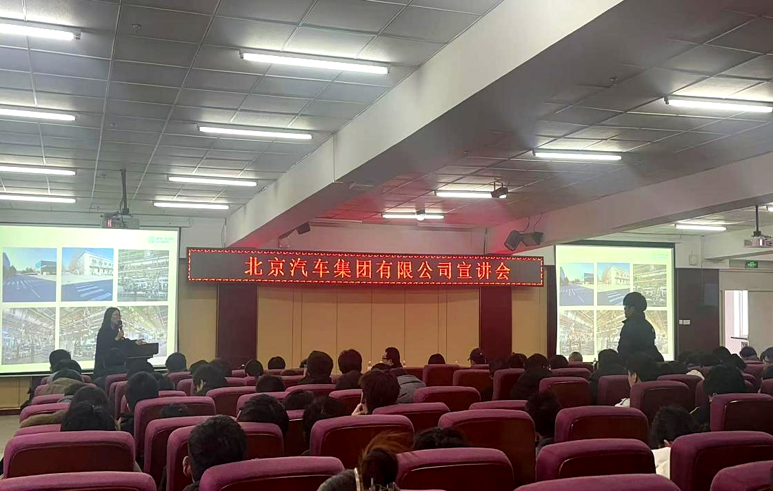近日,北京汽车集团有限公司2026届校园招聘宣讲会在Beat365图书馆501会议室顺利举办。作为中国汽车行业领军企业和世界500强企业,北汽集团的此次宣讲吸引了来自机电学院多个专业的近200名应届毕业生踊跃参与,现场座无虚席,互动热烈。