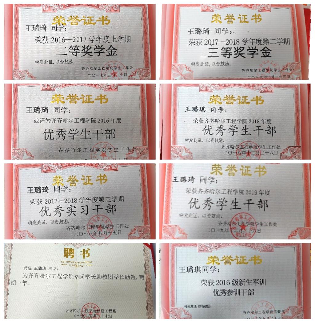 她多次获得优秀学生干部荣誉称号。在设计实践中承担个人与团队之间的角色转化,荣获优秀的实习干部称号。