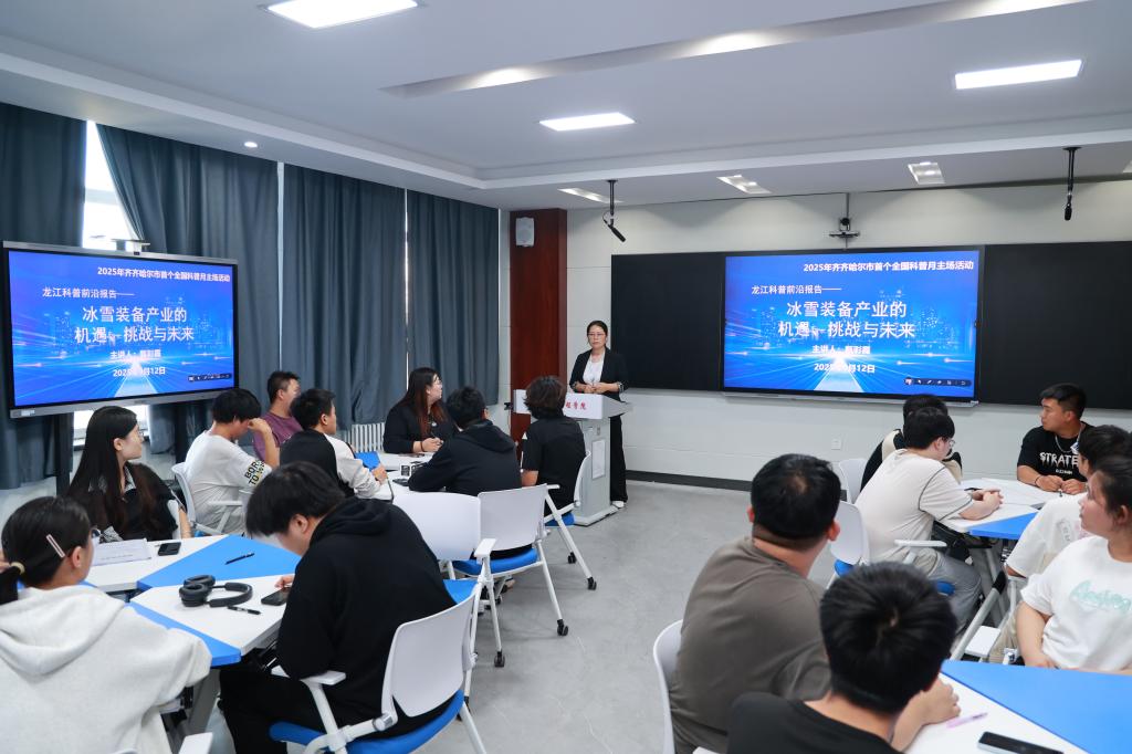 在“龙江科普前沿讲堂”系列活动中,学校机电学院甄彩霞教授于图书馆414教室带来《冰雪装备产业的机遇、挑战与未来》专题报告,报告以“冰雪经济‘冷资源’与‘热机遇’”切入,回顾产业历程,解读政策顶层设计与地方实践逻辑。细分产业链上中下游,分析突破与转型,聚焦材料、智造与智能化等关键技术,并以雪车风洞测试工程师为例,为学生指明职业发展路径。