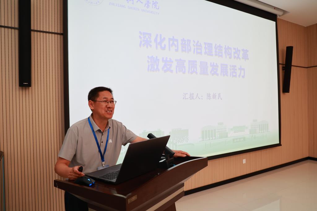 浙江树人学院副校长陈新民在“深化内部治理结构改革激发高质量发展活力”报告中介绍了树人学院的创校历程,从强化党建引领,筑牢治理根基;健全治理制度,提升治理效能;完善治理结构,凝聚协同合力;拓宽治理路径,激发办学活力;抓住治理核心,加强队伍建设五方面进行分享,他表示,要牢记习近平总书记“三个贡献”殷切期望,探索民办高校高质量发展“树人之路”,朝着建设高水平应用型综合性大学目标扎实迈进。