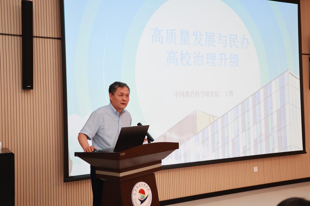 中国教育科学研究院教育体制机制改革研究所所长王烽在“高质量发展与民办高校治理升级”专题报告中,从多维角度阐述了合规治理:筑牢法律和政策底线;学术治理:平衡行政权力与学术权力;数字治理:重构权力运行流程;共同体治理:构建多元合作生态的丰富内涵。同时,立足宏观政策与理论前沿,系统阐述民办学校内部治理结构体系建设的重要性与实施路径。