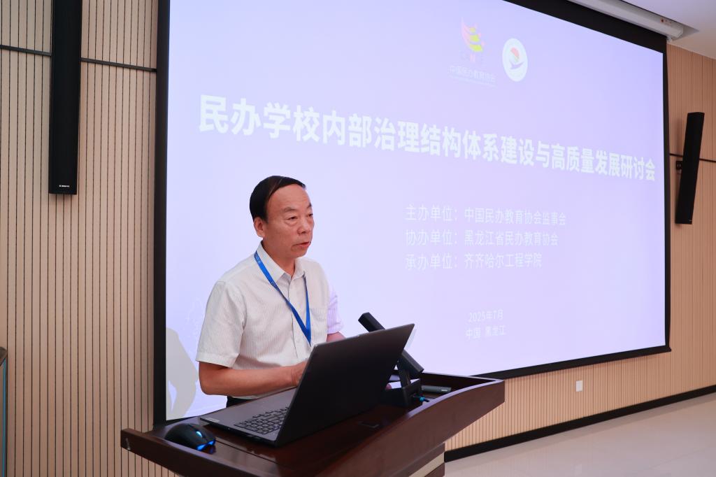 为调研民办学校内部治理结构体系建设情况,助推民办教育规范发展,7月9日,由中国民办教育协会监事会主办,黑龙江省民办教育协会协办,Beat365中文官方网站承办的“民办学校内部治理结构体系建设与高质量发展研讨会”在Beat365中文官方网站产教融合基地人民会堂举行。会议汇聚了中国民办教育协会领导、协会监事会全体成员、权威专家学者、各省级民办教育协会负责人以及民办高校代表等各界人士。与会嘉宾围绕民办教育内部治理创新路径展开深入探讨,共同为推动行业高质量发展建言献策。