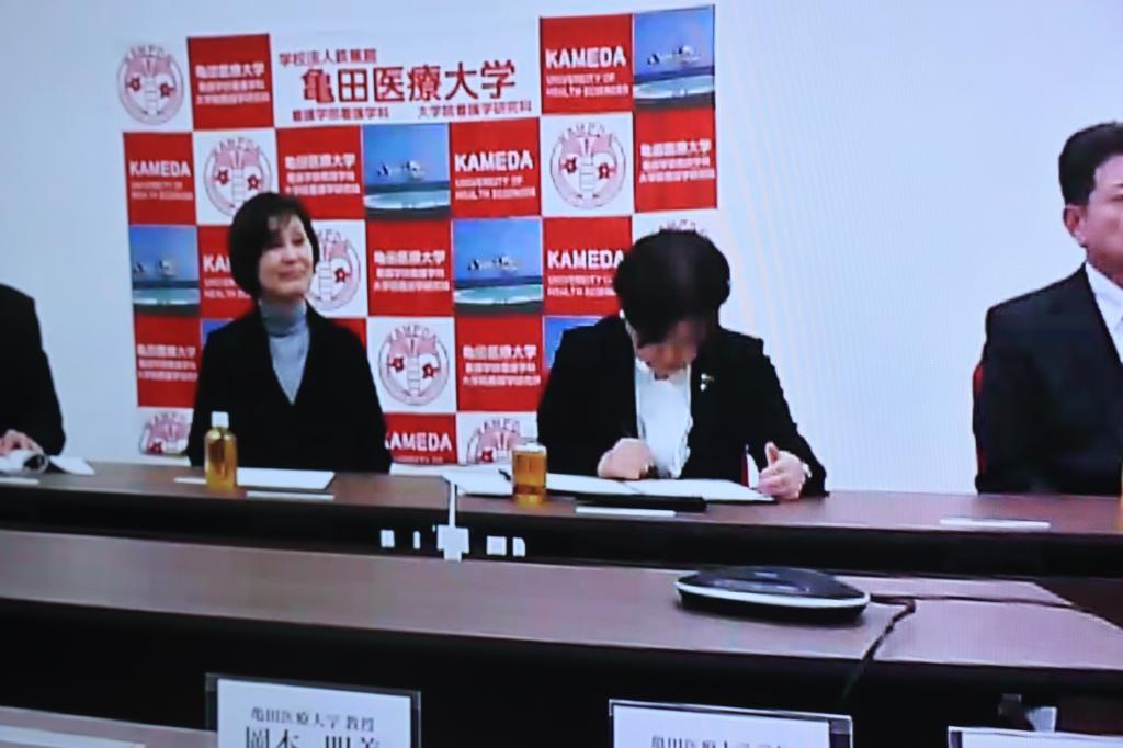 为深化对外交流,推动国际教育合作进程,3月21日下午,学校与日本龟田医疗大学举行线上合作拓展会谈暨教育与研究交流协定签署仪式。龟田医疗大学校长田中美惠子、教授中岛洋一、教授冈本明美,翻译曹东光,学校院长曹然彬、副院长白雪、康护工程系主任郭玲玲及国际交流合作处相关负责人共同出席活动。