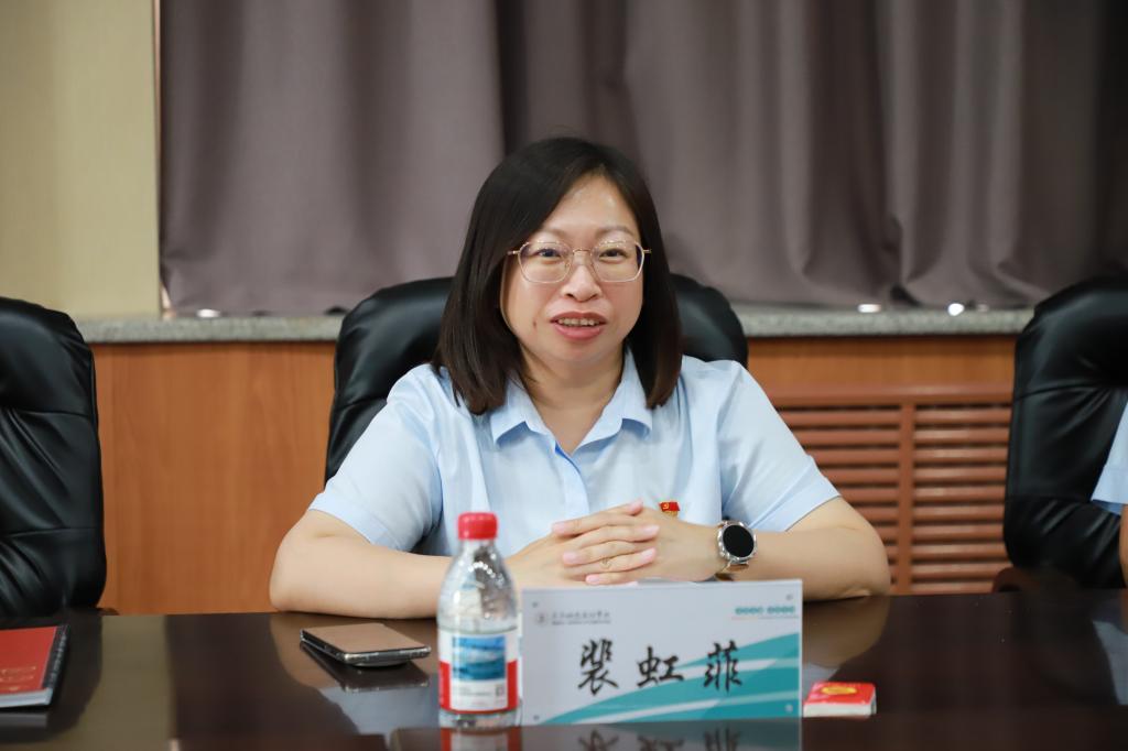 裴虹菲对学校的热情接待表示感谢对学校的先进办学理念和具有前瞻性的发展规划表示赞赏。介绍了中国建设银行在金融服务方面的特色优势。希望能借此机会深入了解学校需求,达到精准对接,进一步在金融服务等方面开展银校联动共建,为双方的发展合作注入新动能,不断提升合作的深度和广度。