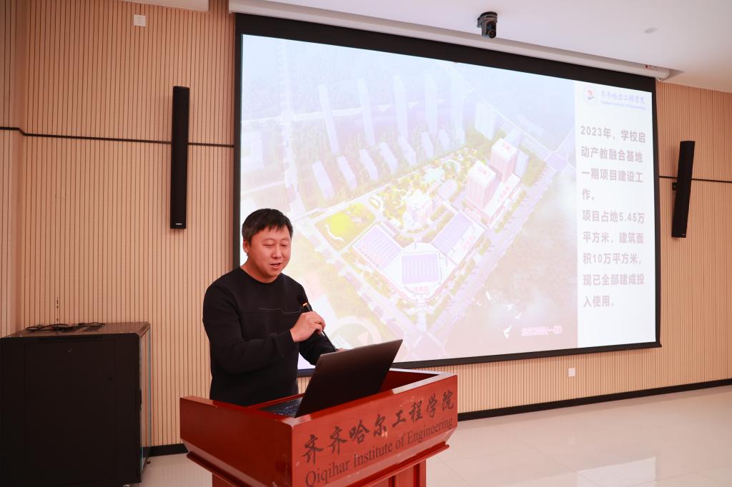 崔晓东就学校文体康旅新业态作了专题汇报,系统阐述了学校在产教融合模式创新、冰雪运动设施规划建设以及体育健康产业发展方面的思路与成果。