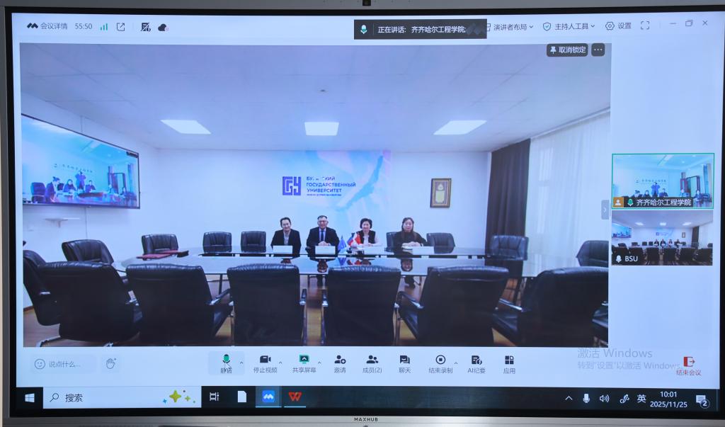11月25日上午,学校与俄罗斯布里亚特国立大学举行线上合作签约仪式布里亚特国立大学校长达姆迪诺夫·阿尔达尔·瓦列里耶维奇、科研副校长诺莫戈耶娃·维多利亚·弗拉基米罗夫娜、国际关系处处长班扎拉克采娃·娜塔莉亚·尤里耶夫娜,学校创校校长、理事长曹勇安副校长白雪、土木与管理学院院长徐明及国际交流合作处相关人共同出席活动。签约仪式由国际交流合作处处长赵丹丹主持