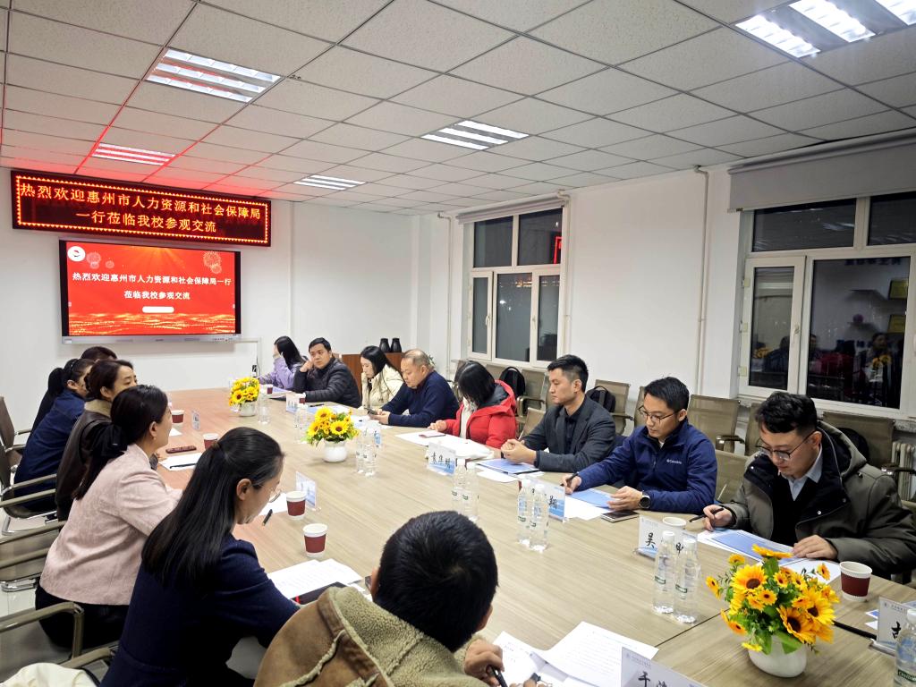 贯彻落实广东省“百万英才汇南粤”人才行动计划,12月22日,惠州市人力资源和社会保障局人才交流服务中心主任黄三元带队,携市人社局职建科、人才市场管理中心、仲恺高新区社会事务管理局等相关部门负责人,以及惠州亿纬锂能、TCL科技集团、广东利元亨智能装备股份有限公司企业招聘及人力资源高管一行校,围绕深化产教融合、推动高质量就业开展深入交流。学校党委副书记、纪委书记、副校长陈景鑫出席座谈会,学生发展中心主任康静,产教集团及各学院主要负责同志陪同交流。