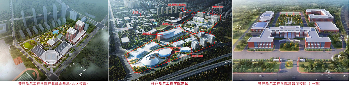 学校创造了集教学、娱乐、运动、康养、会议、餐旅为一体的“文体康旅”新业态,成立齐工产教集团,打造产教融合基地,为学生提供全方位、多层次的学习实践平台。产教融合基地(北区校园)包括游泳馆、体育馆、冰上运动馆综合体,人民会堂,外事中心等。其中,冰上运动馆是国内除体育大学以外、唯一由高校建设的场馆,可承办花样比赛、短道速滑和冰球比赛。人民会堂是集会议、文艺演出等为一体的多功能礼堂,同时也是学校美育实践的重要基地。除大剧场外还配备了以齐齐哈尔市各区县命名的18间分组讨论室。产教融合园区(东区校园)的室内滑雪馆已开始建设,智慧康养园区、数智工创园区以及昂昂溪区校园建设项目也在积极筹建中。