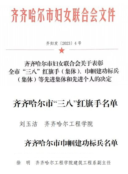 3月22日,齐齐哈尔市妇女联合会发布了“齐齐哈尔市妇女联合会关于表彰全市“三八”红旗手(集体)·巾帼建功标兵(集体)等先进集体和先进个人的决定”,Beat365刘玉洁老师获“市三八红旗手”、徐明老师获“市巾帼建功标兵”...