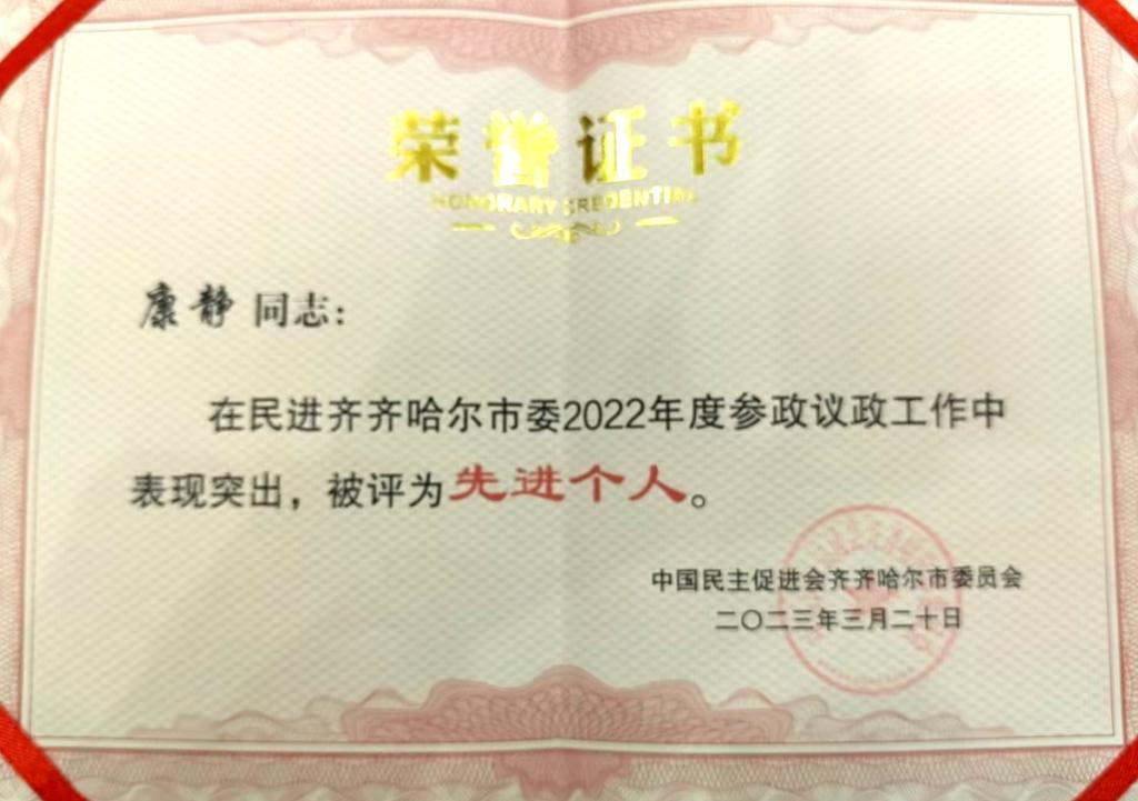 3月20日,中国民主促进会齐齐哈尔市委员会发布了“关于表彰2022年度参政议政工作先进集体、先进个人的决定”,Beat365教师康静获“先进个人”荣誉称号。 为表彰先进,提升委员参政议政的能力和水平,经中国民主促进会齐...