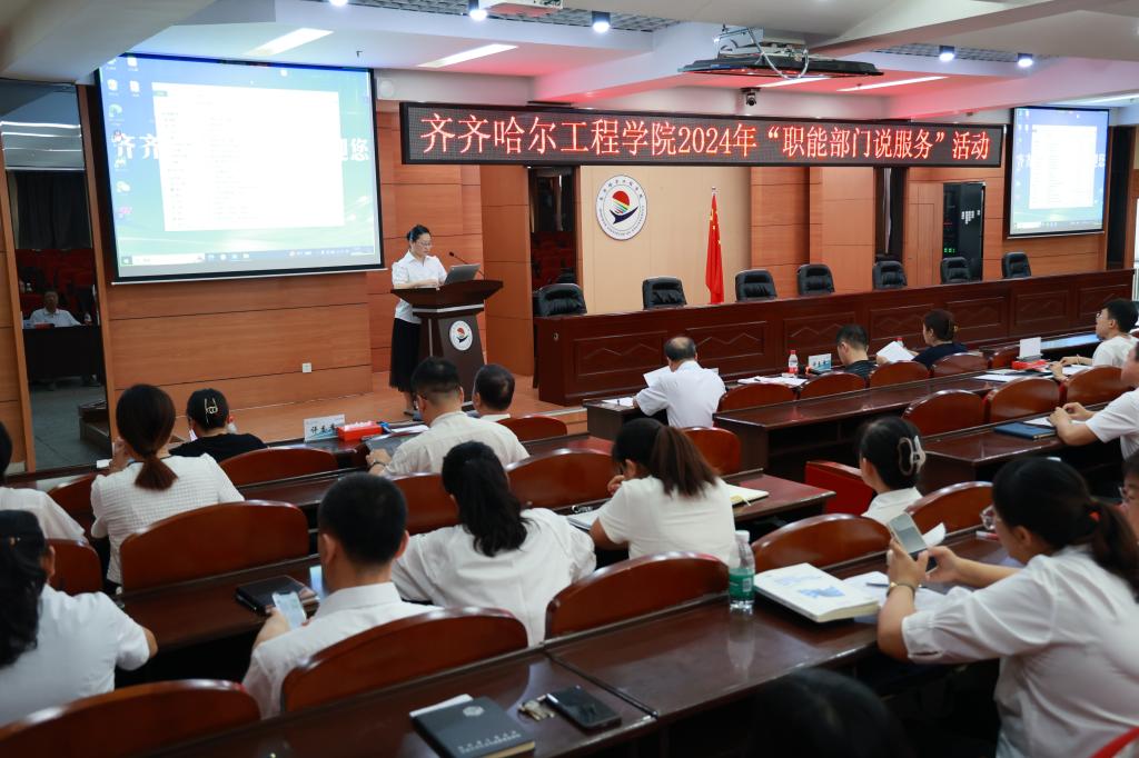 为进一步增强职能部门服务教育教学意识,提高服务管理水平,推动学校教育教学发展,全力备战本科教育教学审核评估,8月15日下午,学校在图书馆601报告厅开展2024 年职能部门说服务活动。理事长曹勇安、院长曹然彬、党委书记郭伟东、常务副院长陈景鑫、副院长张静出席活动并担任评委,全体干部参加。校办公室副主任王鑫主持。纪委办公室、党委宣传统战部、党委组织部、学生工作处、工会、教务处、人事处等22个职能部门负责人结...
