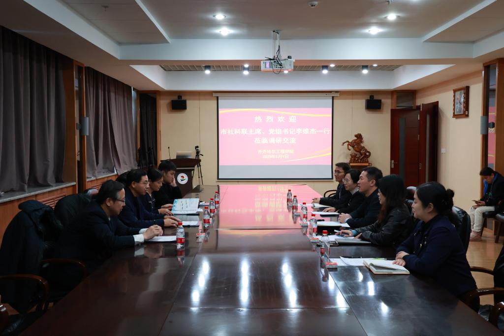 1月9日下午,齐齐哈尔市社科联主席、党组书记李维杰,副主席、党组成员王微,副主席、党组成员刘新伟、市哲学社会科学规划办周浩一行来校调研交流。学校党委书记郭伟东、副院长张静、科研处处长张平、马克思主义学院院长赵婷婷、科研处宋庆永陪同调研并参加座谈会。调研座谈会在图书馆603南会议室举行。会上,郭伟东对李维杰一行的到来表示欢迎,对市社科联对Beat365给予的关心、支持和帮助表示衷心感谢,并介绍了学校近年来的发...