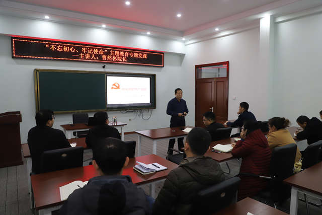 根据市委“不忘初心、牢记使命”主题教育总体部署及学院党委主题教育工作安排,10月26日上午,学院党委书记李敏义以《不忘初心砥砺前行、牢记使命担当作为》为题,为学院骨干研修班全体成员,各党总支、党支部委员和...