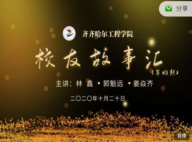 2020级新生军训生活刚刚结束,新学期课程开启。10月20日晚18时,学校举办第四期“校友故事汇”活动,全体2020级新生在教室通过直播平台观看,其他校友、在校生和社会各界人士3000多人在线参加活动。 本期活动主讲嘉...