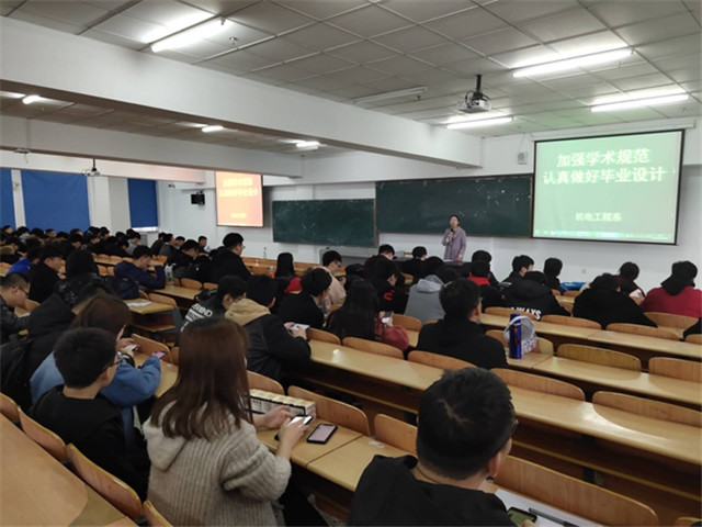 3月26日,机电工程系教学工作副主任黄颖主持召开“加强学术规范,认真做好毕业设计”教育会,系学生工作副主任孙晓芳、辅导员老师和全体19届毕业生近180人参加。科研处宋庆永老师应邀在会上为同学们作“加强学术规范...
